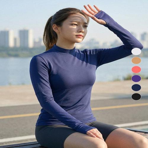 [이지바이]투엘라 여성 에어스노우 냉감 반폴라 기능성 캐주얼 핑거홀 긴팔 티셔츠(W7ST08)