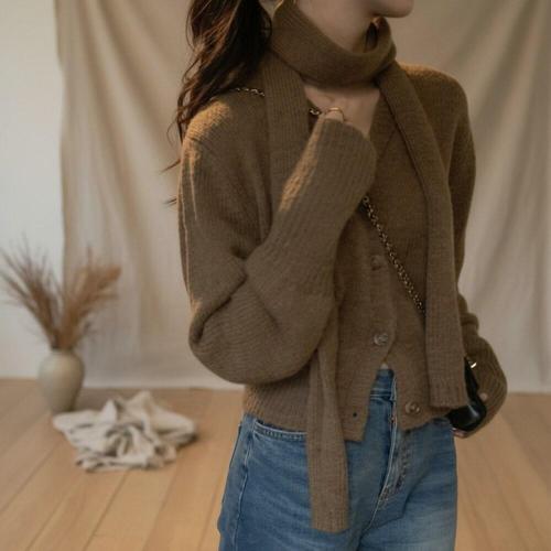[옷자락]여성 겨울 포근한 브이넥 니트 가디건 스카프 세트