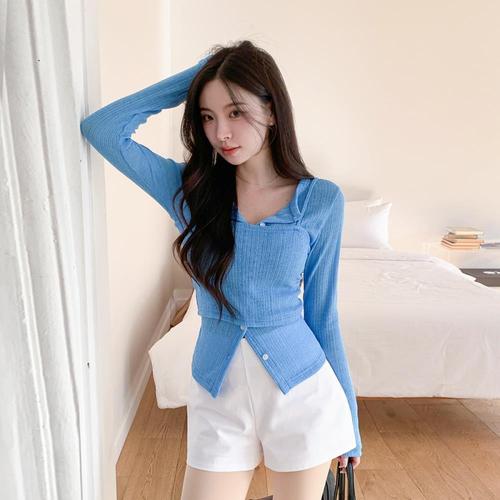[옷자락]여자 데이트룩 크롭 나시 가디건 세트
