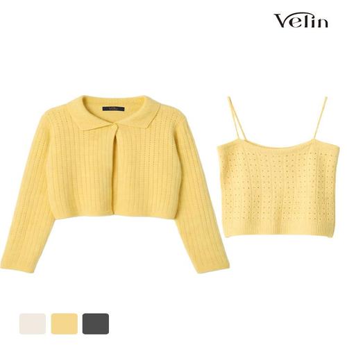 [벨린]벨린 엘론 니트 SET 카라 가디건 나시 탑