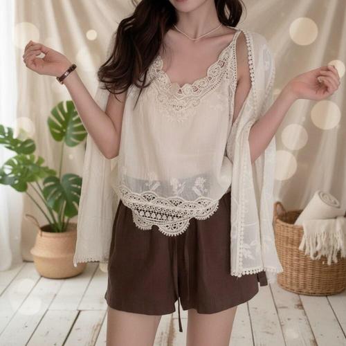 [다잇템]여성 크로쉐 레이스 카디건 슬리브리스 세트