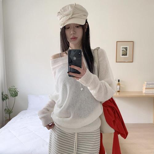 [다잇템]여성 가오리넥 얇은 비침 니트