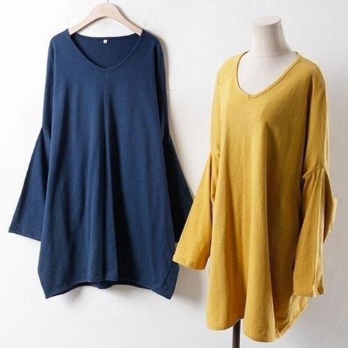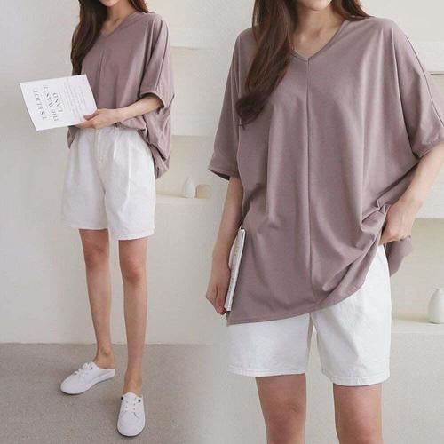 브이 절개 가오리 롱 박스 티 여성 빅사이즈 오버핏 데일리 롱