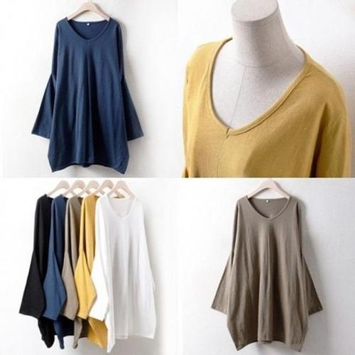 [엄지척]빅사이즈 여성 가오리핏 루즈핏 롱 니트 티셔츠_19681349_667501