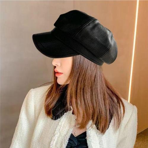 TC 시크한 올블랙 패션 팔각 레더 모자 고급스러운 느낌 블랙 WFJ8E14