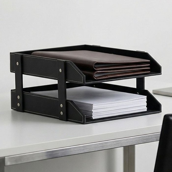 히키스 OFFISYS 2단 타워 가죽 서류트레이 A4 결재 문서보관 책상정리 데스크테리어