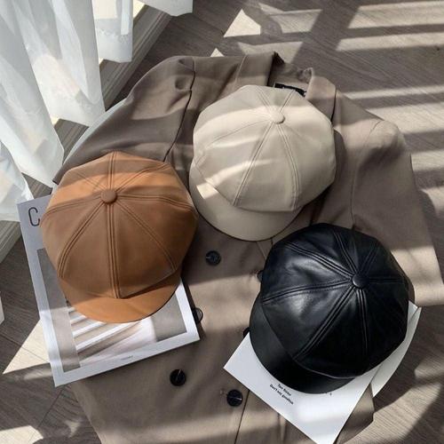헌팅캡 베레모 패션 레더심플빵모자 가죽 무지 데일리 WFIJXR0