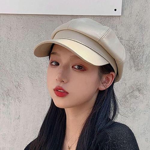 헌팅캡 여성 팔각 빵모자 레더 시크 패션
