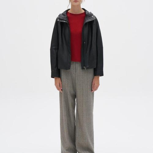 클리지 세이브존03 클리지 차나 니트 후드 가죽 점퍼 AQCP2WLJ01A