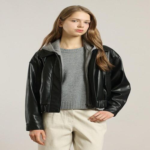스타일닥터 여성 레더 자켓 숏 루즈핏 레이어드 후드 점퍼 아우터
