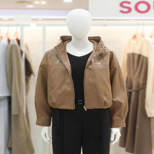 [숲]반 후드 페이크 레더 크롭 점퍼(SBXLE2F1)_DG