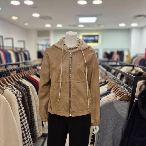 [트리아나]니트 후드 인조 가죽 점퍼 AL3WA08