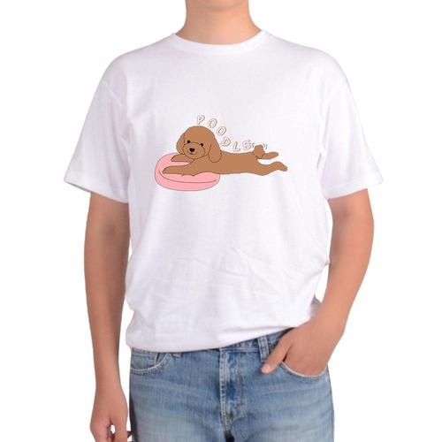 길단 아시아핏 반팔티 강아지 푸들 POODLE 밤색푸들 엎드려있는그림 WFKNUIX