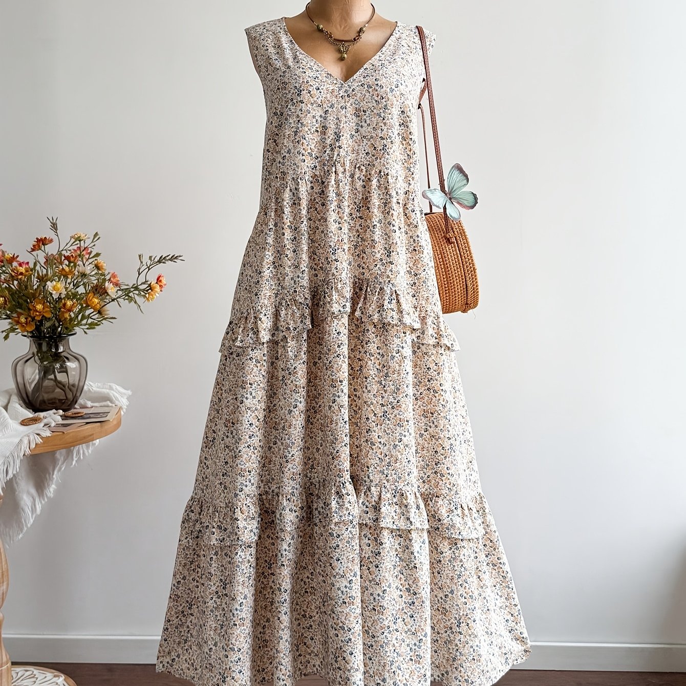 TEMU 플러스 사이즈, 오버사이즈 V넥 롱 캐주얼 휴가용 드레스