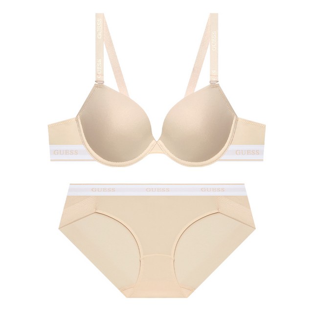 GUESS UNDERWEAR 골지 화이트포인트 스포츠 브라 팬티 세트 - 베이지 GFWBR232BE_BP232BE 2060304