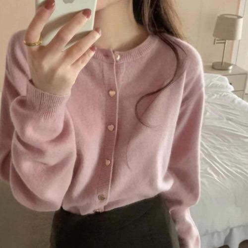 708090 가을 겨울 여성 라운드 심플 카디건 스웨터
