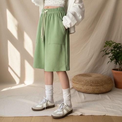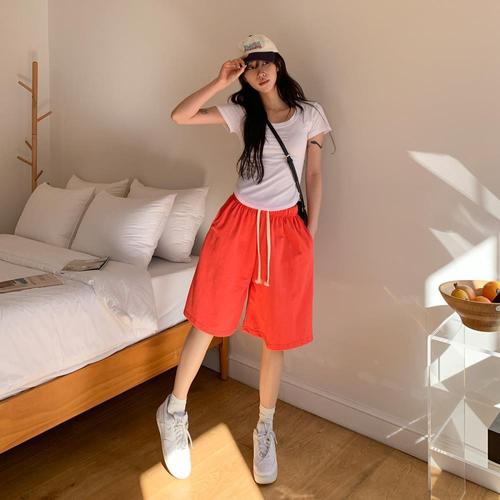 [다잇템]여자 클래식 고무줄 넓은 코튼 캐쥬얼 숏팬츠