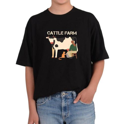 반팔라운드 소농장 젖소 고양이 우유 그림 전사이즈 WFIX5F7