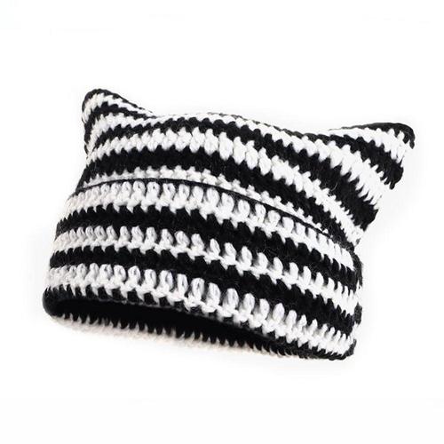 스트라이프 고양이귀 모자 겨울 방한모 귀여운 여성모자 WFJTINA
