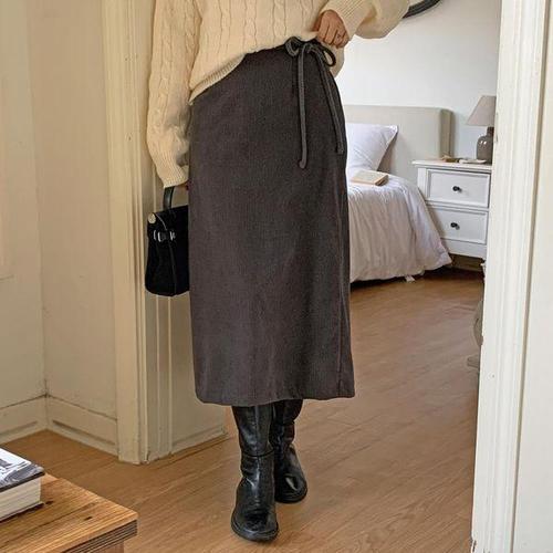 봉봉스토리 발루 페이크트임 여성 골덴 롱 스커트