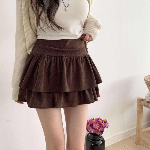 골덴 스커트 코듀로이 여성 치마 미니 주름 겨울 짧은 (HSJ-WFGDVXQ)