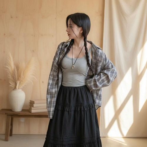 [유야]여성 캡내장 레이어드 레이스 골지 끈 나시 -FSL0055- 봄 여름