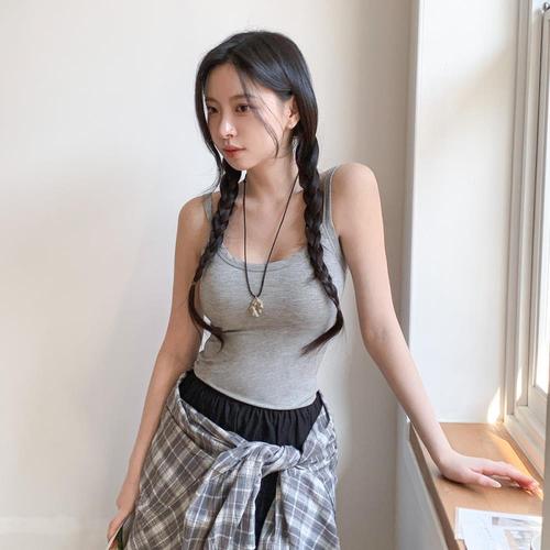 더블끈 골지 민소매 나시 티셔츠 여성 여름 티셔츠 브라캡 노브라 나시티