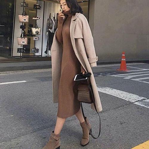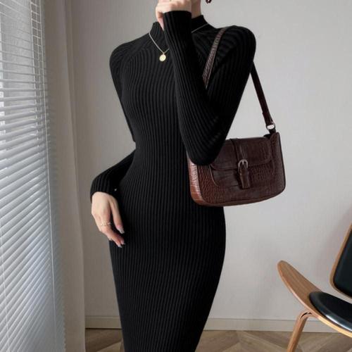 여성 이너 부드러운 도톰 골지 슬림핏 니트 롱 원피스 WFKBOSB