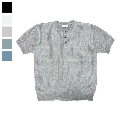 [리빌모아]남자 리브드 헨리넥 골지 반팔 니트티 RB-KNH-Q093-그레이