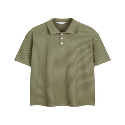 [리빌모아]남자 리브드 헨리넥 골지 반팔 니트티 RB-KNH-Q093-카키