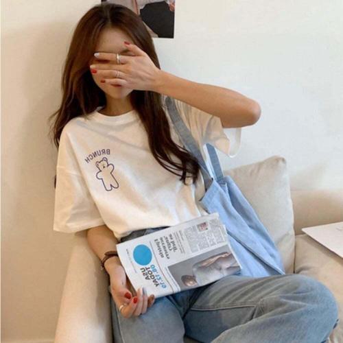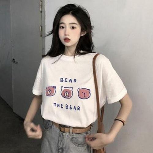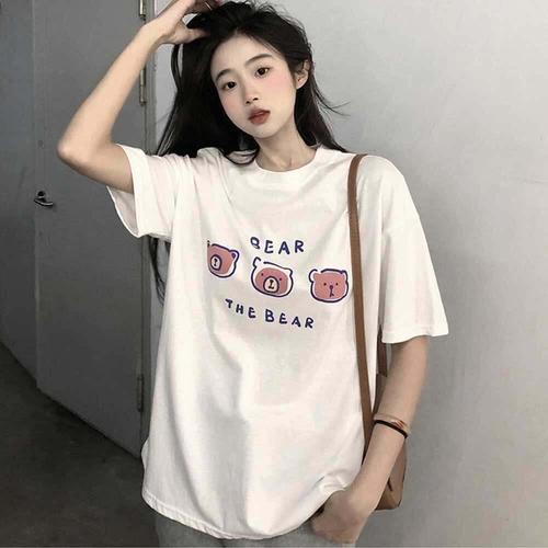 [오너클랜]인기상품 여성용 화이트 루즈핏 반팔 티셔츠 곰 프린트 캐주얼웨어 [WFLL0IA_260304]