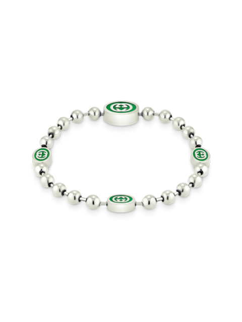 [구찌] 인터로킹 G 에나멜 볼 체인 실버 팔찌 YBA701609001