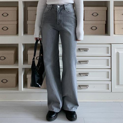 [옷자락] 여자 그레이 워싱 포인트 스트레이트 데님팬츠