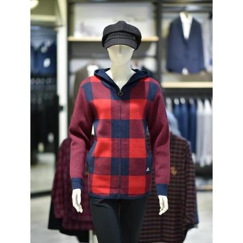 [그린조이]그린조이 세이브존03 여성 골프 겨울 체크 후드 가디건니트 GF22SG81W(레드) (11033415)