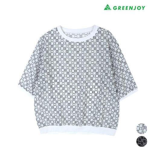 [그린조이]여성 프린트 시보리 반팔 라운드 티셔츠