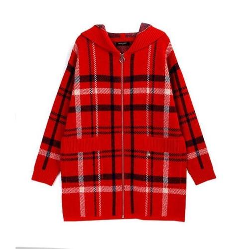 [그린조이]그린조이 세이브존03 여성 골프 겨울 체크 후드 가디건니트 GF22SG81W(레드) (11033415)