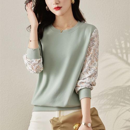 [오너클랜]인기상품 여성 라운드넥 봄 긴팔 셔츠 오버핏 그린 블라우스 [WFLIMUL_260301]