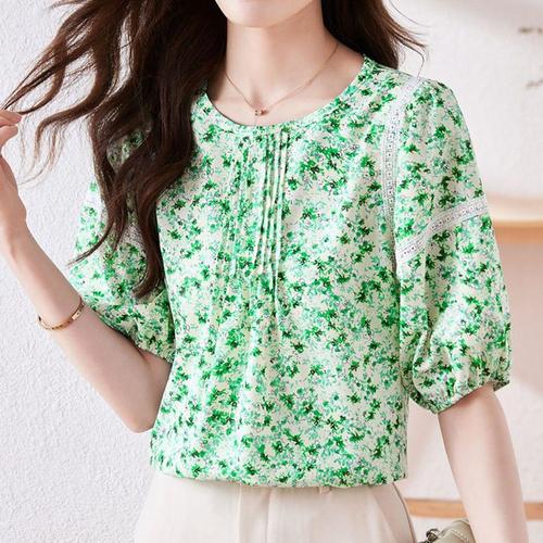 [셀럽하우스]여성 MWMY3641 여름 꽃무늬 플라워 반팔 블라우스 그린
