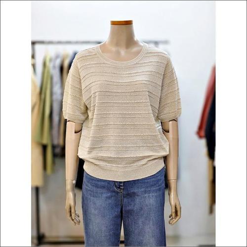 [다잇템]여성 SS 소매 U넥 스웨터 글리터 반소매 티셔츠