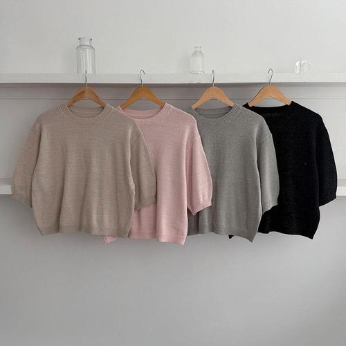 핑크셀럽 여성용 베이직 보들 라운드 니트 티셔츠