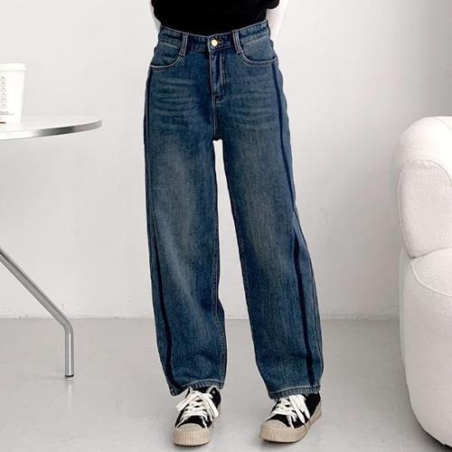 H스타일(JN)9620융기모밴딩세미배기 겨울 여성 융기모 청바지 데님팬츠 배기팬츠 밴딩팬츠
