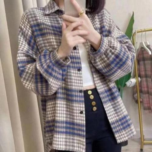 [셀럽하우스]체크 EKWL4959 롱 셔츠 여성 루즈핏 남방 기모 긴팔 데일리