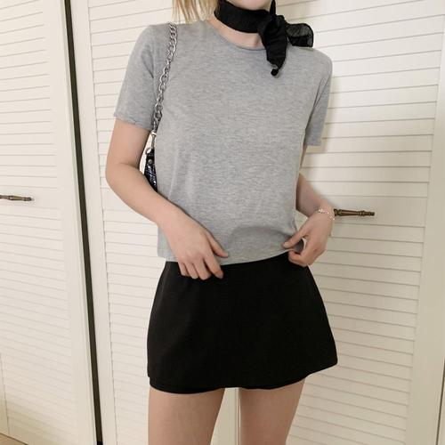 [옷자락]여자 기본 베이직 면모달 부드러운 라운드넥 세미크롭 반팔티