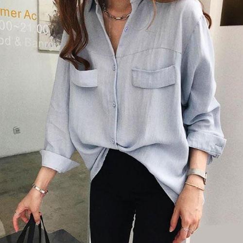 [에이치플러스몰]기본 셔츠블라우스 무지남방 여성 루즈핏 블라우스
