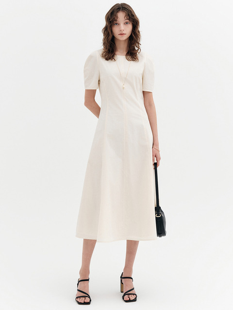 [쿠잉]라운드 셔링 3컬러 데일리 여성 롱 원피스