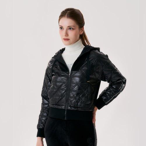 [까스텔바작]여성 블랙라인 자수 포인트 믹스 후드 패딩 점퍼BGEWTJ802 BK_DG