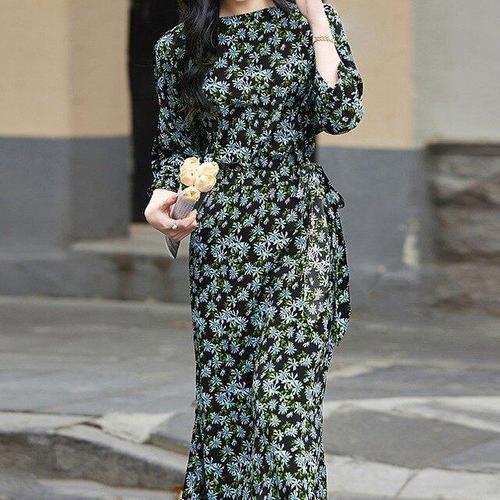 [오너클랜]인기상품 여성용 플라워 쉬폰 롱 드레스 하객용 프릴 러플 원피스 봄꽃무늬 [WFLL77U_260304]
