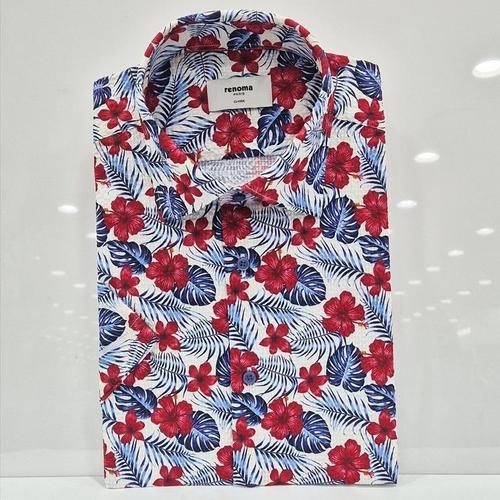 [레노마셔츠]일반핏/몬스테라 플라워 프린트 서커/꽃무늬 지지미 반소매 셔츠 RPUSG1674 RD_US
