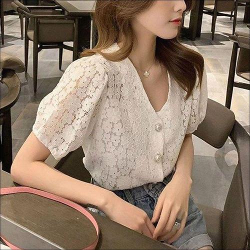 여성블라우스 꽃무늬 자수 레이스 V넥 오피스룩 페미닌룩 WFKDUY5