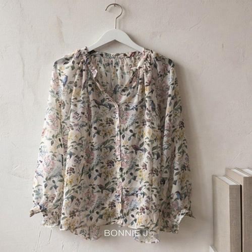 [보니제이]살랑거리는 꽃무늬 쉬폰 블라우스 화사한 가든 패턴